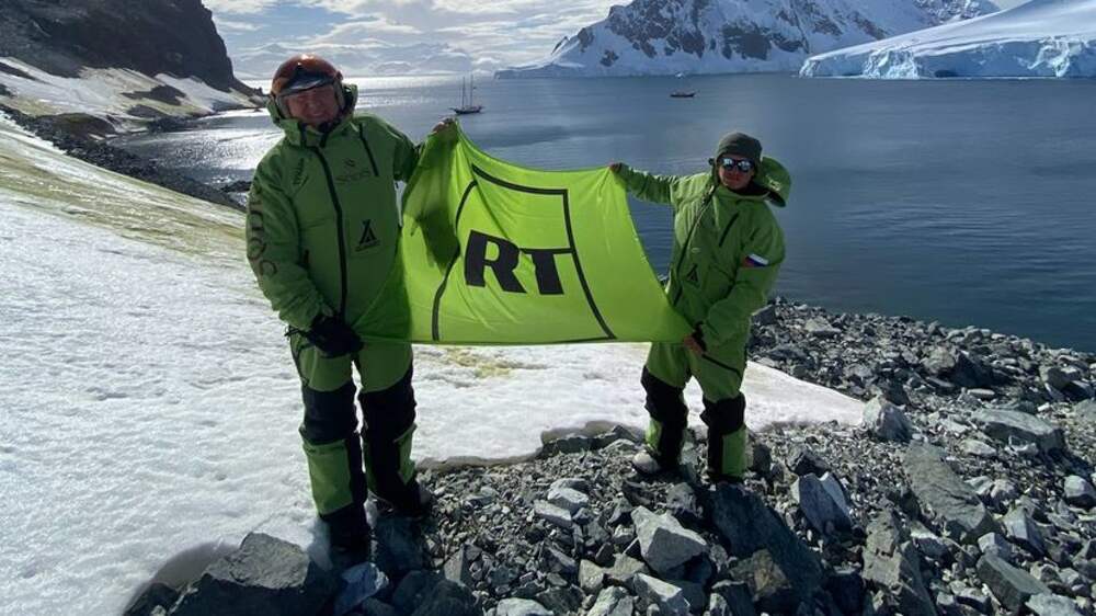 Путешественники Аксенов и Попов установили флаг RT в Антарктиде