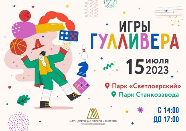 Летний фестиваль гигантских игр «Игры Гулливера» состоится на двух площадках Нижнего Новгорода— в парках «Светлоярский» и Станкозавода. Гостей ждут 15 июля с 14.00 до 17.00. Об этом сообщили в «Дирекции парков и скверов города Нижнего Новгорода».