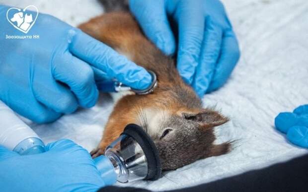 Оказалось, что у бельчонка сломан таз, а также он болен пневмонией. Ветеринары дали зверьку лекарства, и он пошёл на поправку.