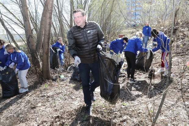 Наводить чистоту вышли местные жители, волонтёры. Не остался в стороне и губернатор Глеб Никитин.