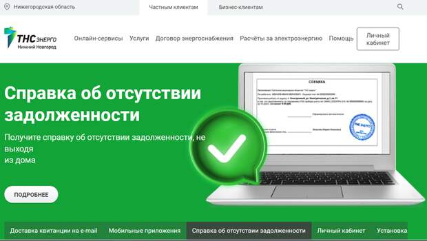 Клиенты «ТНС энерго НН» теперь могут просто и быстро получить справку об отсутствии задолженности в режиме онлайн. Для этого нужно: