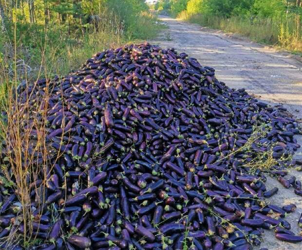 Свалку баклажанов в лесу под Дзержинском обнаружили местные жители. Блогер Алексей Алексеев поделился фотографиями в соцсетях.