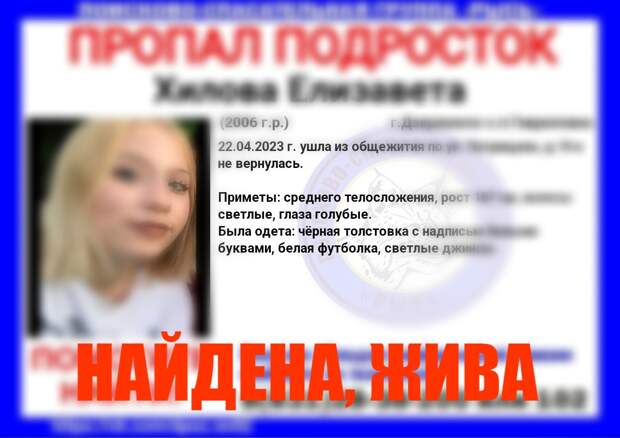17-летнюю девушку в Дзержинске нашли живой спустя 3 дня. Волонтеры поисково-спасательного центра «Рысь» благодарят за помощь в поисках ВКонтакте. Напомним, что 22 апреля девушка ушла из общежития на улице Петрищева и пропала.