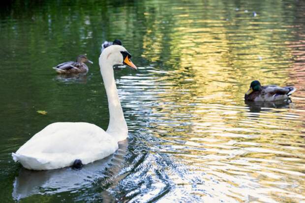 Пары у него нет, но одиночество скрашивают три утки.В ведомстве отметили, что из года в год фиксируются случаи, когда лебеди не улетают в теплые края и остаются в регионе. Это происходит из-за теплых зим, когда водоемы не замерзают, и лебеди находят водоросли для пропитания. Жировые запасы позволяют им достаточно комфортно чувствовать себя, несмотря на низкую температуру воздуха. Благодаря им же лебеди могут долгое время обходиться без пищи.