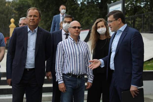 Председатель организационного комитета по подготовке празднования 800-летия Нижнего Новгорода Сергей Кириенко, полномочный представитель президента РФ в ПФО Игорь Комаров и губернатор Нижегородской области Глеб Никитин посетили нижегородский парк «Швейцария», где в течение последнего года проводится реконструкция.