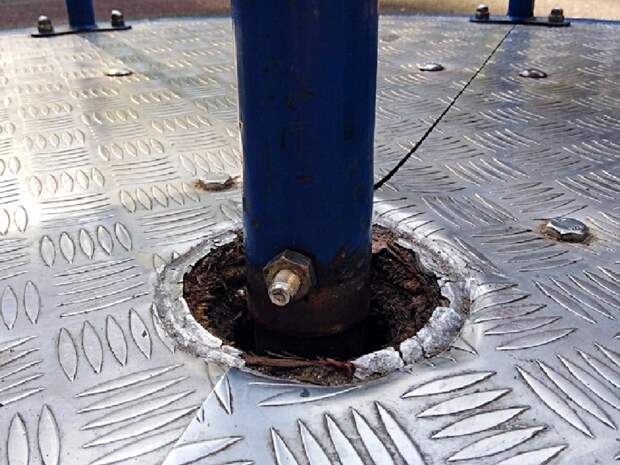 — Правая нога ребенка соскользнула и попала в открытое отверстие – между платформой и движущимся металлическим стержнем рулевого колеса.
