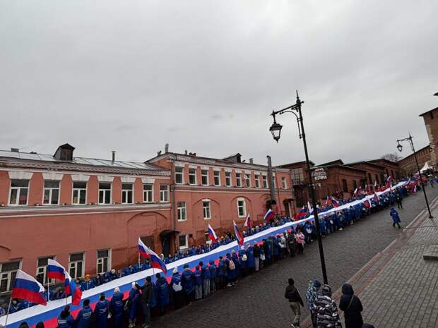 Несмотря на дождливую и прохладную погоду в рамках акции «Нижегородцы — для России» на Ивановском съезде был развернут 100-метровый российский флаг. В шествии от Кремля до памятника Минину и Пожарскому приняли участие более 600 человек. Среди волонтеров-участников были активисты молодежных движений, представители движения «Волонтеры епархии», «серебряные» добровольцы, школьники и студенты Нижегородской области, представители ветеранских организаций и многие другие.