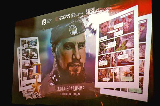 В экспозиции 20 графических новелл, реальные истории подвигов наших десантников, разведчиков, летчиков и танкистов. Среди героев — полковник Андрей Фроленков, чье подразделение заняло Чернобыльскую АЭС без боя, полковник Владимир Жога, ценой собственной жизни спасший мирных жителей Волновахи, летчик-ас майор Виктор Дудин и многие другие.