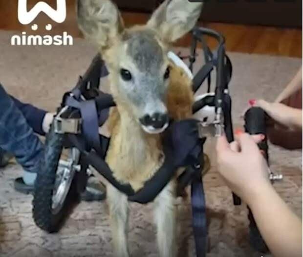 Косулёнку, потерявшему ноги в результате травмы, в клубе «Серая лошадь» сделали инвалидную тележку. Об этом сообщает группа Ni Mash | Ни Мэш ВКонтакте.