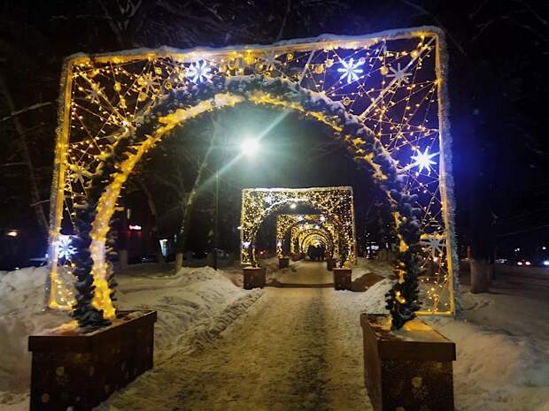 Финальной точкой в реконструкции сквера, который идёт от кинотеатра «Электрон» до здания администрации Приокского района стала установка праздничной иллюминации.