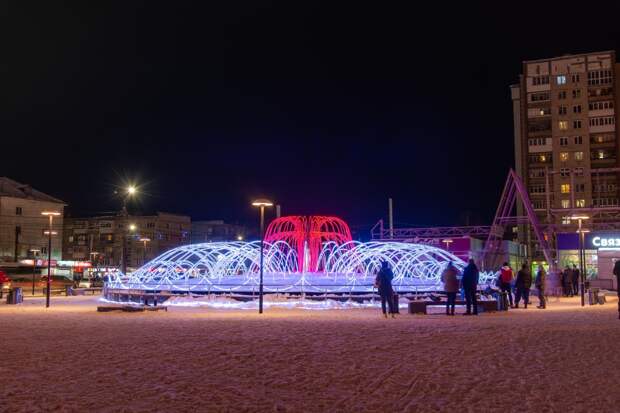 В Дзержинске на Торговой площади в преддверии Нового года была установлена световая инсталляция, которая будет украшать главный городской фонтан в зимний период. Внешний вид конструкции разработан главным архитектором города Ильей Соколовым для создания эстетического образа одной из основных площадей города и с учетом современных тенденций.