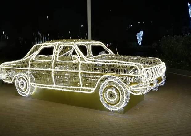 В Нижнем Новгороде появился светящийся автомобиль. Нижегородцы поделились кадрами инсталляции в соцсетях.
