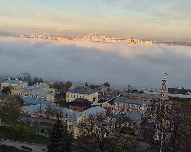 Сегодня утром, 31 октября, по всему Нижнему Новгороду прошел густой туман. Пользователи опубликовали фотографии погодного явления. Из-за тумана видимость на улицах заметно снизилась, поэтому многие здания скрылись из виду. Над Волгой и Окой низко расстелились облака — между двумя берегами города появилась воздушная стена.