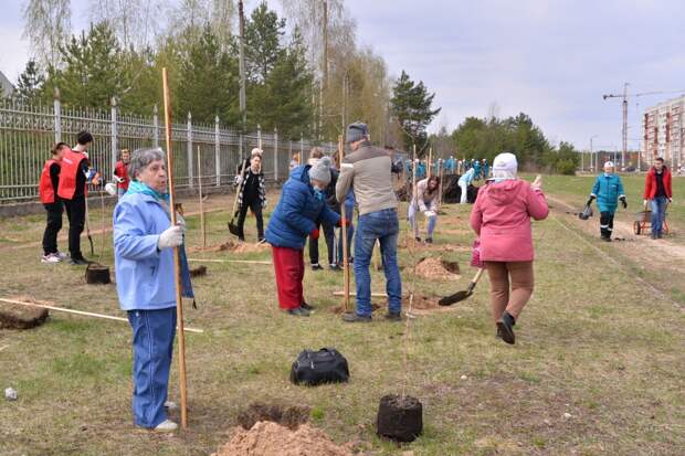 Сотрудники администрации города совместно с Советом ветеранов, компанией АО «Сибур-Нефтехим» и волонтерами высадили 60 берез у госпиталя Ветеранов.