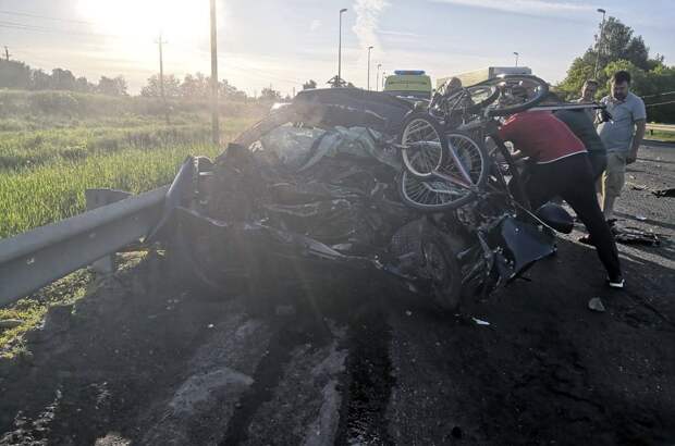 Столкновение оказалось настолько мощным, что грузовик даже подбросило. Иномарка превратилась в груду железа. Остались лишь искорёженные велосипеды, которые на крыше машины семья из Балашихи везла на отдых…