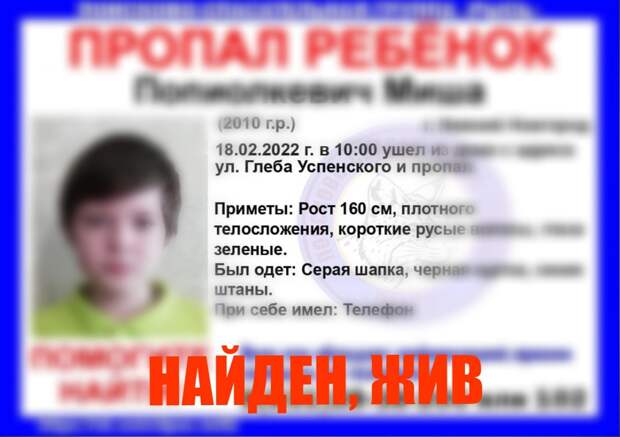 11-летний ребенок найден живым в Нижнем Новгороде. Об этом сообщили в ПСГ «РЫСЬ».