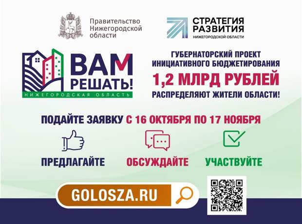 Ранее глава города Юрий Шалабаев отметил, что губернаторский проект инициативного бюджетирования «Вам решать!» очень популярен у нижегородцев. «Это отличная возможность сделать что-то для своего двора или улицы, любимого сквера, школы, спортивной площадки», – сказал мэр, призвав жителей принять активное участие в подаче своих заявок.
