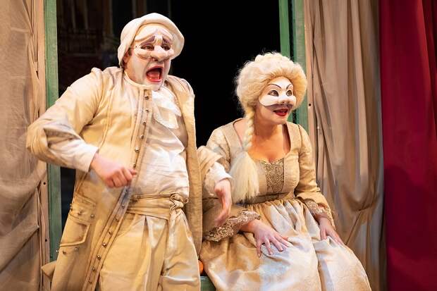 Это классическая комедия дель-арте, но вместо итальянских Панталоне с Труффальдино на сцене скорее современный вариант русских народных Петрушек и Матрёшек.