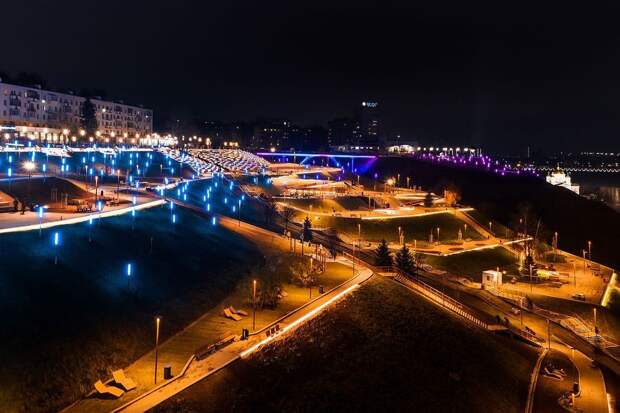 Местный фотограф Никита Духник накануне «подсмотрел», как выглядит территория с новыми фонарями, и поделился яркими кадрами в Instagram.