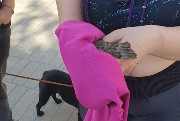Женщина обратилась к сотрудникам Нижегородской ярмарки с просьбой помочь птенцу. Вместе они вызволили его из-под решетки, отогрели и отпустили на волю.