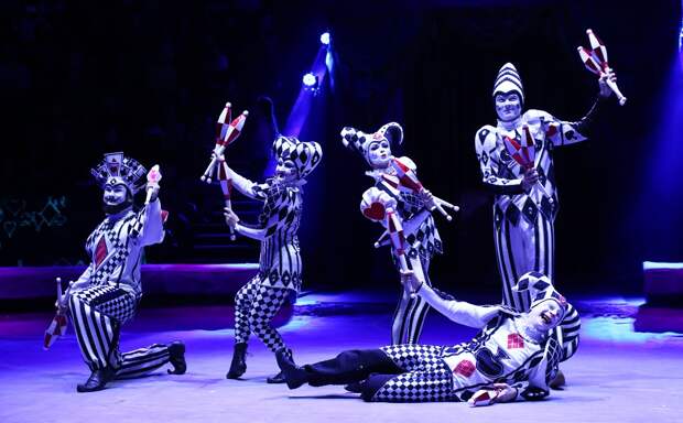 Эквилибристы в образах карточных мастей разъезжают по арене на моноциклах разной высоты и синхронно жонглируют булавами под музыку. Уникальный номер является одним из украшений шоу Гии Эрадзе «Песчаная сказка» (0+), гастроли которого сейчас проходят в Нижнем Новгороде. Его создатели – цирковая династия Чугуновых — титулованные артисты Росгосцирка.