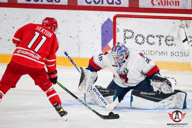 После безголевого первого периода автозаводцы мощно стартанули в начале второй двадцатиминутки, забросив две подряд шайбы в ворота Якуба Коваржа.
