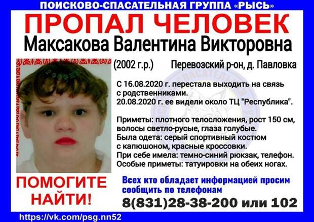Если вы знаете, где находится Валентина, просьба сообщить об этом по телефону 8 (831) 28-38-200 или по номеру 102.