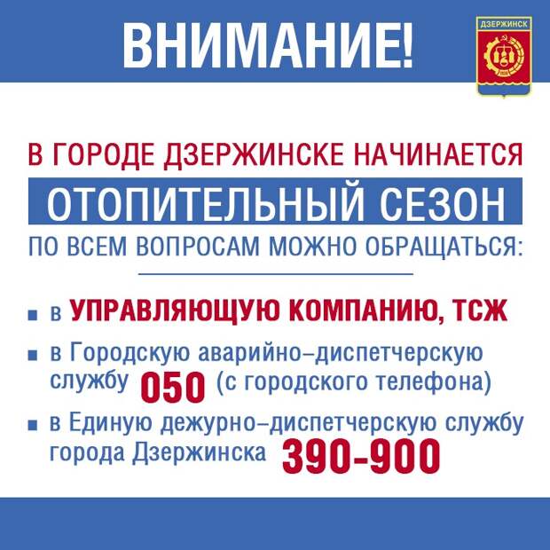 Ежедневно управляющие компании должны публиковать адреса многоквартирных домов, где они завершили работы полностью. Работа управляющих компаний города должна быть максимально открытой и прозрачной для проживающих в каждом доме людей», — сказал заместитель главы города Денис Дергунов.Напомним, 10 сентября в ходе совещания с управляющими кампаниями и ТСЖ под председательством главы города Дзержинска председатель Законодательного Собрания Нижегородской области Евгений Люлин отметил существующую проблему взаимодействия управляющих компаний с жителями. По итогу совещания глава города Дзержинска Иван Носков поручил управляющим компаниям создать единый Информационный центр, который будет принимать и обрабатывать все обращения жителей независимо от того, какая управляющая компания или ТСЖ занимается обслуживанием дома. Еще новости по теме В Дзержинске стартовал отопительный сезон Нижегородцы смогут задать вопросы об отопительном сезоне по «горячей линии» с 20 сентября В первый день отопительного сезона АО «Теплоэнерго» обеспечило теплом 30% жилых домов и почти две трети объектов социальной сферы