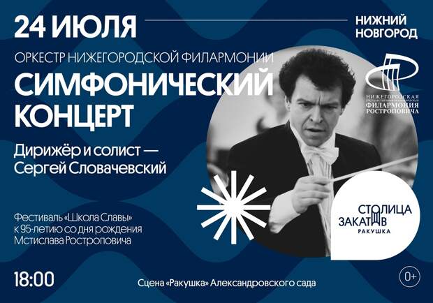Дирижировать и солировать будет заслуженный артист России, доцент Московского института музыки им. А. Шнитке Сергей Словачевский. Музыка прозвучит в исполнении оркестра Нижегородской филармонии.