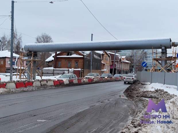 Пятиметровую эстакаду для теплотрассы смонтировали около будущего котлована метро на площади Сенной в Нижнем Новгороде, сообщает группа нового метрополитена ВКонтакте. Высота «арки» составляет 5,17 метров: временная эстакада не помешает проезду грузового транспорта и автобусов по Большой Печерской. Ее появление согласовано с ЦОДД и ГИБДД.