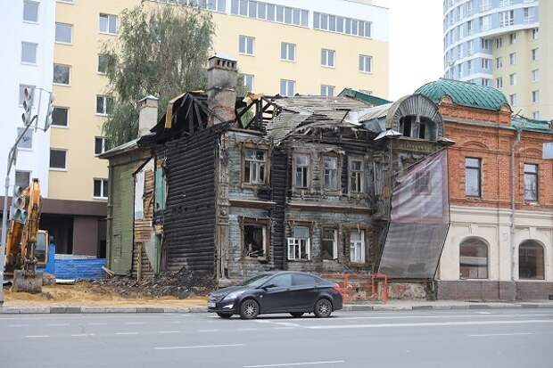 «Сооружения строились по разным проектам, разными хозяевами и сегодня имеют разный статус. Дом Чардымова в стиле модерн с богатым деревянным декором является ОКН, а сгоревший и разобранный дом Самгина — градоформирующий объект в зоне ОКН. Однако сохранению подлежат оба: дом Чардымова будет отреставрирован, а дом Самгина воссоздадут по чертежам.