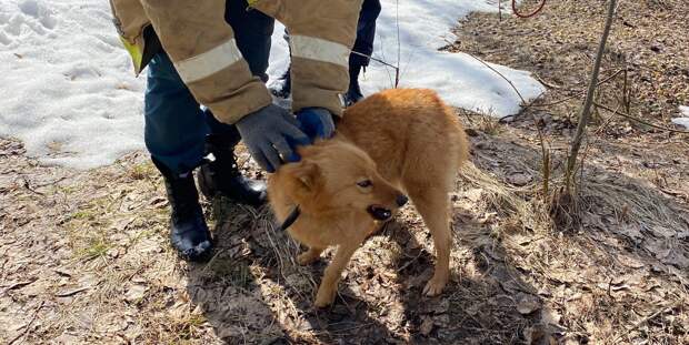 Неравнодушные жители вызвали аварийно-спасательный отряд города Бор, которые помогли вызволить собаку.