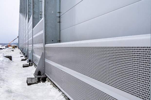 На сегодняшний день выполнили больше 45% запланированных работ. Общая протяженность шумозащитного экрана составит 1700 метров, высота – 10 метров. В проекте предусмотрены самые современные технологии: конструкция толщиной 340 мм состоит из двух шумопоглощающих панелей толщиной 60 и 120 мм с воздушной прослойкой между ними в 150 мм, чтобы снизить звуковые вибрации.