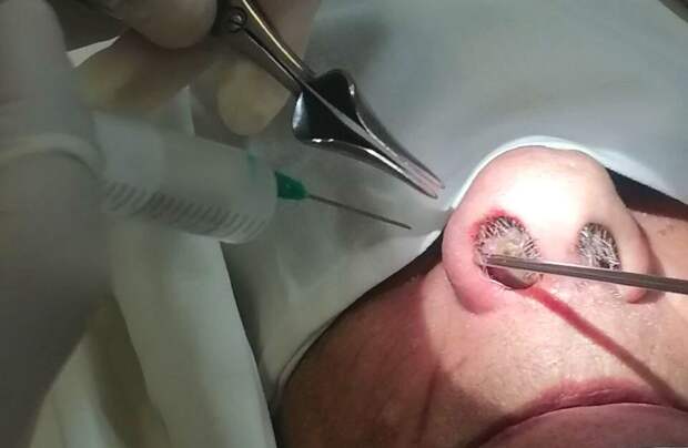 Врачи удалили большую опухоль из носа нижегородца. Об этом сообщили заведующий ЛОР-отделением городской больницы № 35 Григорий Белозеров на своей странице ВКонтакте. Опухоль четыре года росла в носу пациента. Все это время нижегородец и не подозревал об этом. Такой диагноз он узнал случайно, когда с жалобами на затрудненное дыхание обратился к ЛОРу.