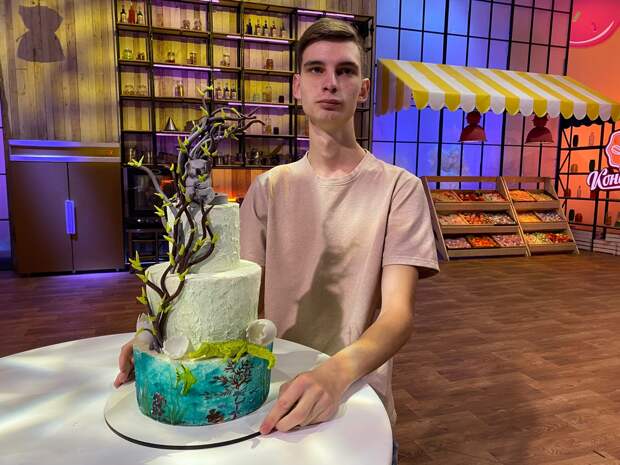 Вместе мы готовились к различным конкурсам: например, в 2022 году я участвовал в региональном конкурсе «Империя вкуса», где занял 2 место», — рассказал Даниил.В сентябре 2022 года студент решил принять участие в телевизионном шоу «Кондитер» на канале «Пятница», за которым давно уже следил. В программе кондитеры готовят торты на различные тематики для звездных гостей. Ведущий передачи — известный в России кулинар Ренат Агзамов, который также выступает в роли судьи.Саровчанин отправил заявку, и через месяц его пригласили на съемки. Перед этим участники должны были прислать три эскиза тортов, и по одному из них приготовить кондитерское изделие. Так как темой выпуска была Австралия, Даниил решил изготовить трехъярусный торт из кокосового бисквита, изображающий уникальную природу и фауну далекого континента. Первый ярус показывал подводный мир, на втором сидел только что вылупившийся из яйца крокодил, а на третьем — коала. Всё изделие также украшало эвкалиптовое дерево. При этом весь декор полностью съедобный.