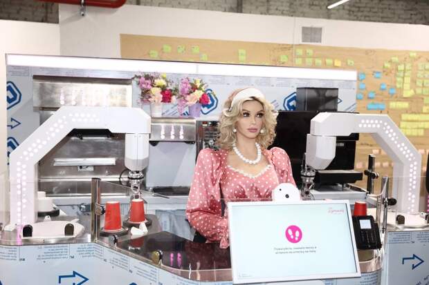 В качестве кассира будет работать дроид Robo-C‑2 Дуняша. Ее прототипом стала первая Миссис Пермь 2014 Диана Габдуллина. Она будет общаться с клиентами, которые ждут заказ.