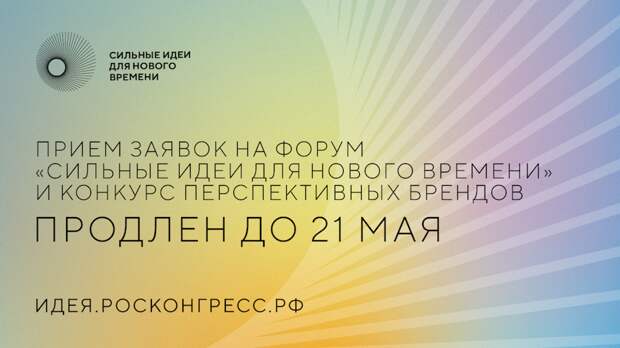 АСИ и Фонд Росконгресс, организаторы форума «Сильные идеи для нового времени», продлевают прием заявок. Такое решение принял Организационный комитет форума во главе с Помощником Президента России Максимом Орешкиным. Подать свою идею можно до 21 мая включительно на крауд-платформе идея.росконгресс.рф.