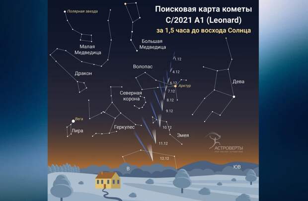 «12 декабря комета сблизится с Землей и достигнет максимума своего блеска — 4-й или даже 3-й звездной величины. Потом она уйдет в южное полушарие, станет невидимой для нас и ее блеск будет постепенно уменьшаться», — рассказал он.