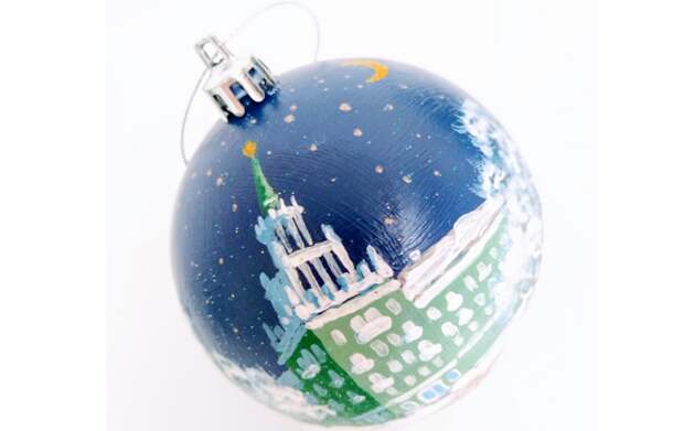 Главные достопримечательности Дзержинска украсили новогодние шары. Ёлочные игрушки расписал художник Иван Харченко.