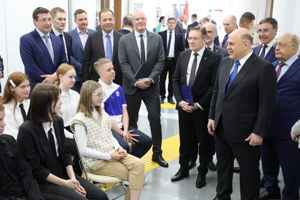В ходе посещения филиал МГУ имени М. В. Ломоносова в Сарове Михаил Мишустин ответил на вопрос одного из студентов о международном научном сотрудничестве. «Конечно, нужно взаимодействовать с дружественными странами. Очень большое количество стран, где есть замечательные учёные и преподаватели, с нами сотрудничают в научной сфере. Я уверен, что сейчас мы сможем такую кооперацию продолжать. И вы будете иметь возможность общаться со своими зарубежными коллегами», — сказал Михаил Мишустин. Также он встретился со старшеклассниками в детском технопарке «Кванториум Саров». Одним из участников встречи стал Кирилл Соседко, который накануне, 1 июня, на стенде Нижегородской области в рамках конференции «ЦИПР-2023» пригласил Михаила Мишустина посетить «Технопарк Саров». Как отметил Глеб Никитин, кванториумы стали важной частью образовательной системы региона. «Помню, как сам приезжал в технопарк в 2018 году и как появились планы по открытию здесь „Кванториума“. Сегодня его образовательными программами охвачено более 2 600 ребят из Сарова и четырех соседних районов области», — отметил Глеб Никитин. Также Михаил Мишустин в Сарове посетил Институт лазерно-физических исследований Российского федерального ядерного центра — Всероссийского научно-исследовательского института экспериментальной физики (РФЯЦ-ВНИИЭФ) и возложил цветы к памятнику выдающемуся учёному Юлию Борисовичу Харитону. Напомним, что детский технопарк «Кванториум Саров» начал свою работу 7 февраля 2020 года в поселке Сатис (Дивеевский район). Он создан на базе «Технопарка „Саров“ по инициативе губернатора Нижегородской области Глеба Никитина.
