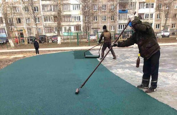 Как рассказал первый заместитель главы администрации Сормовского района Алексей Рыболовлев, в настоящее время подрядчик укладывает резиновое покрытие.