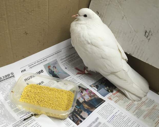 Чудесная история спасения птицы произошла на Правдинском радиозаводе. Как рассказал сайту pravda-nn.ru один из сотрудников предприятия, началось с того, что на улице, на трубе, увидели белоснежного голубя. Птицу заметила работница одного из цехов. На голубя пытались напасть вороны. Он был явно напуган и выглядел очень несчастным.