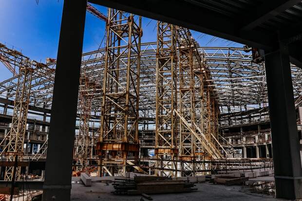 Более 60% металлоконструкций каркаса ледового дворца смонтировано на Стрелке в Нижнем Новгороде. Руководитель Корпорации развития Нижегородской области Игорь Ищенко отметил, что использование металлоконструкций вместо железобетона позволяет значительно сократить сроки строительства без ущерба для качества.