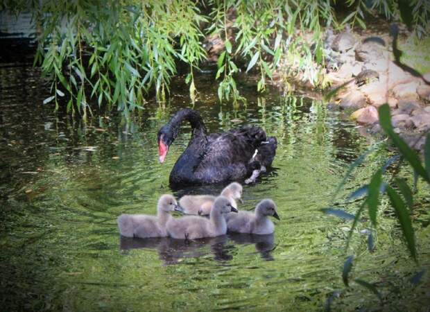 Четыре птенца черного лебедя появились в зоопарке «Лимпопо» в Нижнем Новгороде. Об этом сообщает Telegram-канал парка. Пушистых серых птенцов уже можно увидеть на второй территории нижегородской страны птиц и зверей. Цвет лебедят отличается от родительского: у малышей пока нет перьев.
