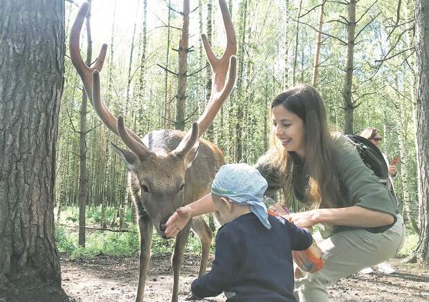 Кстати, питаться здесь не гнушаются дикие кабаны и лоси.В будни экскурсии по экотропе Копорье проводятся в 10.00 и в 12.00, в субботу – в 10.00, в 12.00 и в 14.00, в воскресенье – в 12.00 и в 14.00. А трогать его не моги… Сегодня по территории охотхозяйства проходит экологическая тропа Копорье, пользующаяся большой популярностью у любителей природы и диких животных. Полюбоваться оленями приезжают сюда не только жители региона, но и со всех уголков страны. Пройдя необходимый инструктаж, как себя вести на тропе, посетители могут увидеть грациозных животных, а если повезет, покормить и погладить оленей, оставив об этой встрече фото на память. А уж сколько радости испытывают самые маленькие посетители, когда из их рук олени с аппетитом поедают белый хлеб или морковь. Кстати, кормить яблоками животных запрещено. Знакомство с ними порой заканчивается тем, что самые смелые из оленей могут бесцеремонно залезть к вам в сумку мордой: что там вкусненького еще?