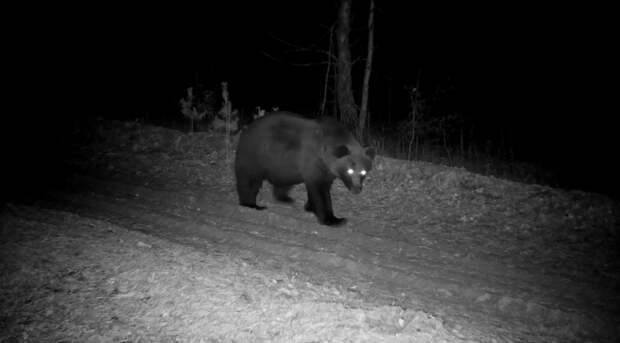 В Керженском заповеднике фотоловушка ночью засняла прогулку бурого медведя. Сотрудники заповедника поделились кадрами в соцсетях