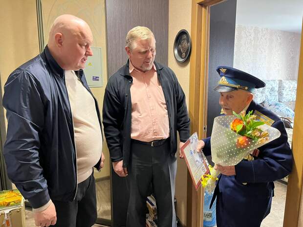 Вчера, 13 апреля, юбиляра поздравили глава администрации Приокского района Михаил Шатилов, директор МБУ «Городской Дом ветеранов» Николай Колосов и военный комиссар Приокского района и Новинского сельсовета Александр Лобанов.