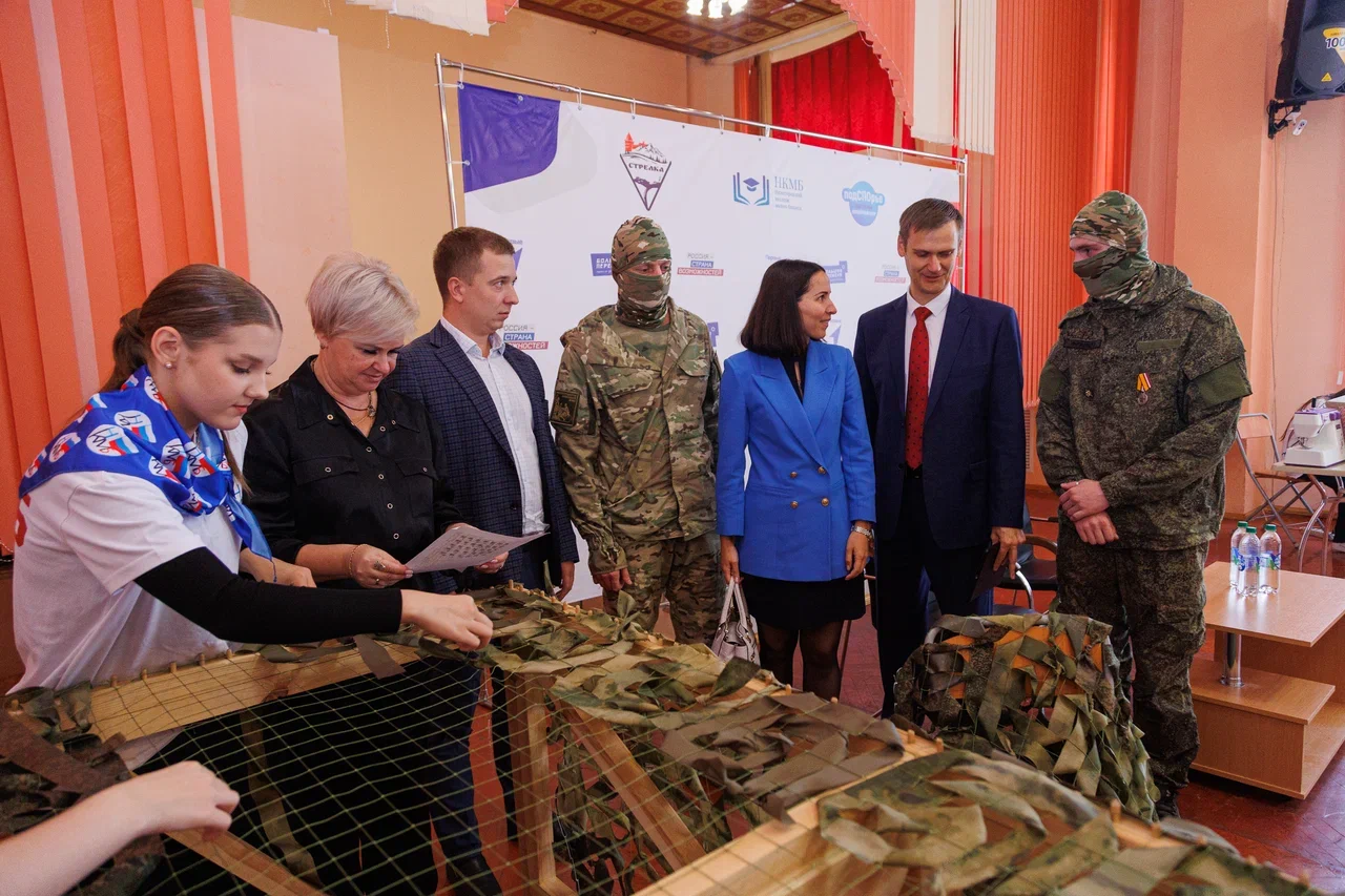 В свою очередь, студенты и преподаватели поделились историями поддержки участников СВО. Они рассказали бойцам о проекте «Узелок на память», который реализуется в учебном заведении для поддержки мобилизованных нижегородцев и их семей. «Проект «Узелок на память» включает мастер-классы по изготовлению сувенирных браслетов в цветах российского флага, теплых рукавиц и маскировочных сетей. Активисты проекта проводят занятия в образовательных организациях и на площадках городских мероприятий для участников самых разных возрастов», – рассказал директор колледжа Александр Евтеев. В ходе встречи с бойцами студенты колледжа организовали показательные мастер-классы. Кроме того, активисты учебного заведения передали на фронт гуманитарную помощь. В ее состав вошли не только продукты питания, но и текстильные изделия – нательное белье, балаклавы и рукавицы. Груз дополнили сувенирами и письмами бойцам со словами поддержки. Михаил Пучков поблагодарил студентов за активную гражданскую позицию и пожелал коллективу колледжа дальнейших успехов в патриотическом воспитании современной молодежи. «Участники специальной военной операции – это настоящие герои нашего времени, которые защищают Родину. Благодаря им у нас есть возможность жить обычной жизнью и получать образование, но мы тоже помогаем фронту, даже находясь в тылу! Сплетенные нами сети укрывают бойцов и технику, рукавицы согревают на холоде, наши письма и сувениры приносят радость военнослужащим и поддерживают их в трудное время», – поделилась студентка Нижегородского колледжа малого бизнеса Елизавета Филимоненкова. Фото: Олег Булыгин