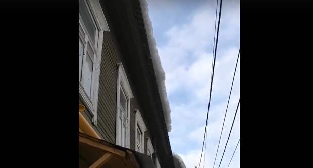 «В Плотничном переулке над людьми нависла реальная угроза. Посмотрите, какие глыбы висят прямо над тротуаром!» – написано в сообщении.