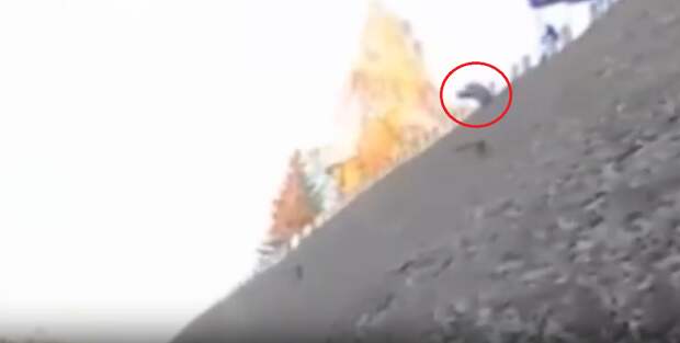 Видео происшествия попало на запись видеорегистратора автомобиля, перед которым и пролетела оторвавшаяся деталь экскаватора. На записи видно, что водителю повезло, и ковш не задел его.